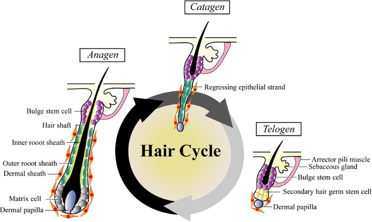 Diverse Growth Factors: A rich consortium of polypeptide signaling molecules (e.g., KGF, HGF, IGF-1, VEGF, FGFs, PDGF) that orchestrate cell proliferation, migration, differentiation, and tissue remodeling, all critical for hair follicle genesis and maintenance.