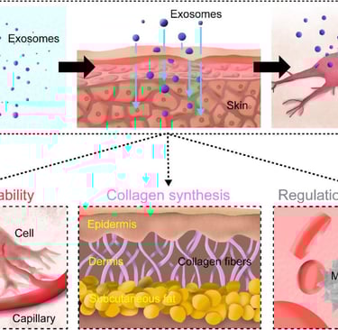 Exosomes stimulate fibroblasts to produce collagen and elastin—key proteins for skin firmness and elasticity.Reference: Hajialiasgary Najafabadi A., et al. (2024). "Exosomes in skin photoaging: biological functions and therapeutic opportunity" Journal of Cell Commun Signal. 2024 Jan 12;22(1):32.